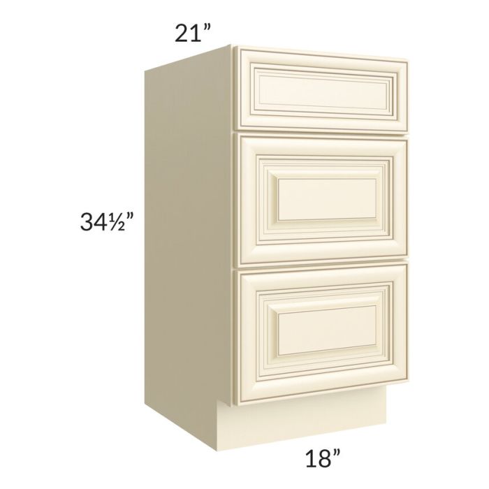 Description / Phoenix Cream Glaze 18" Vanity 3-Drawer Base Cabinet