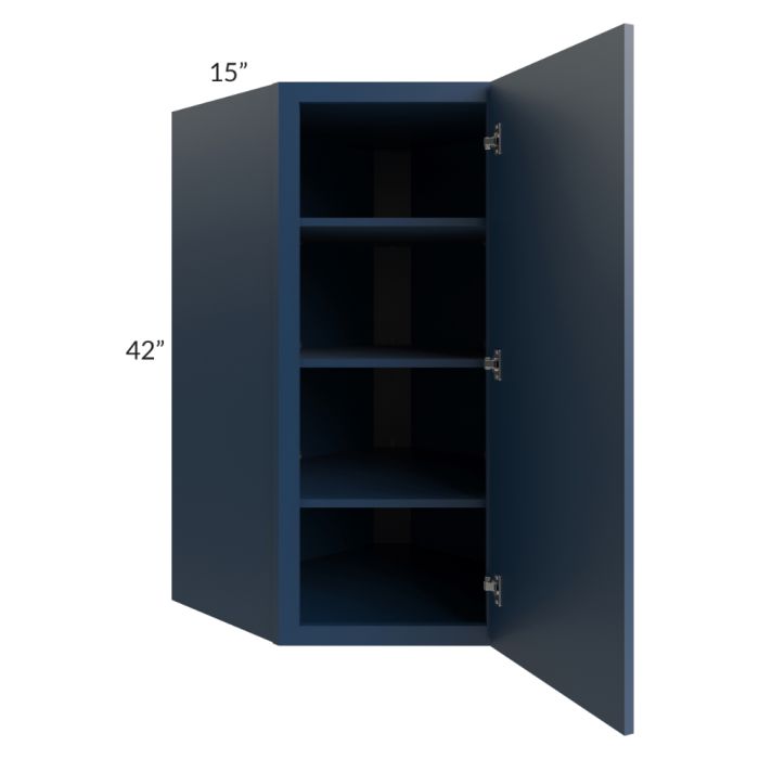 Description / Portland Navy Blue 27x42x15 Wall Diagonal Corner Cabinet