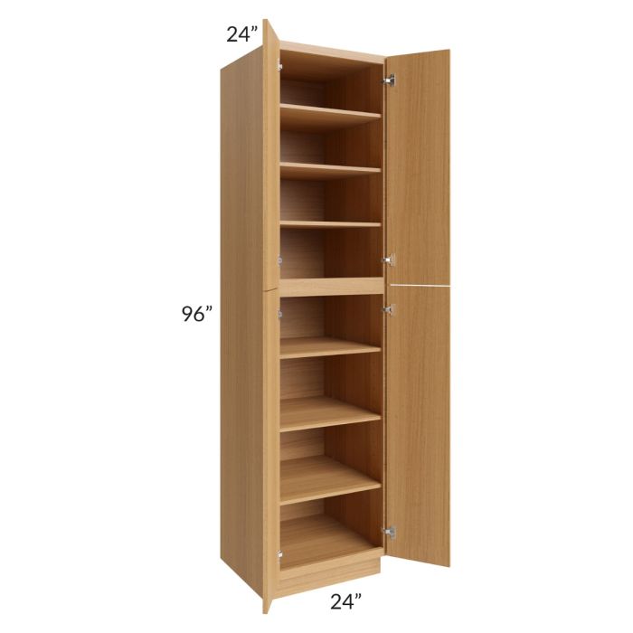Wall pantry cabinet that has 4 doors, 2 smaller doors on top and 2 larger doors on bottom.This pantry cabinet comes with 1 fixed shelf and 6 adjustable shelves. Measurements are as follows: Top/Middle/Bottom door width is 11-11/16". Top door height is 41-5/16". Middle/Bottom door height is 49-1/4".