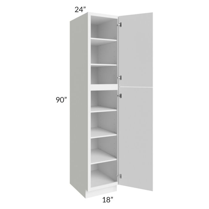 Wall pantry cabinet with 2 doors, 1 smaller door on top and 1 larger door on bottom. This pantry cabinet comes with 1 fixed shelf and 5 adjustable shelves. Measurements are as follows: Top/Middle/Bottom door width is 17-9/16". Top door height is 35-5/16". Middle/Bottom door height is 49-1/4".