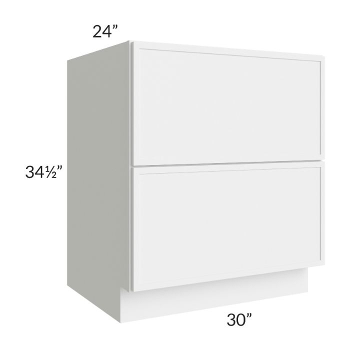 Description / Portland White 30" 2-Drawer Base Cabinet