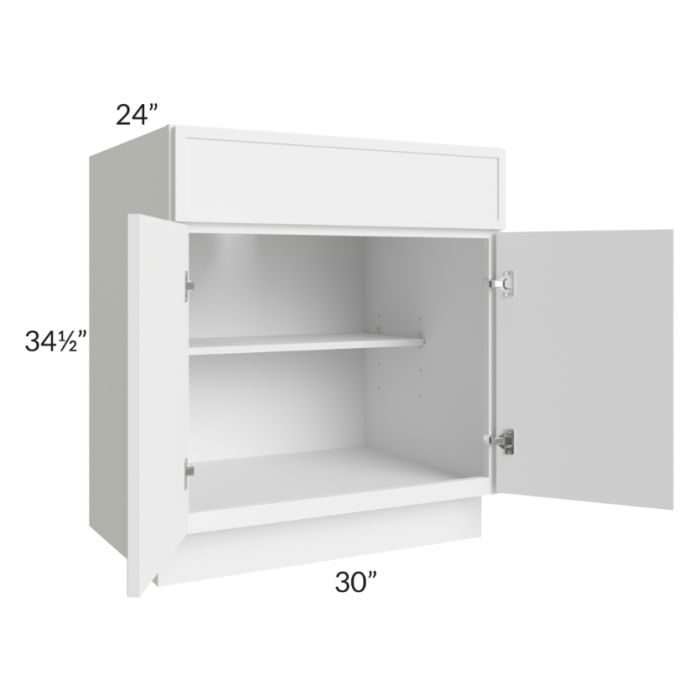 2 door base cabinet with 1 drawer and 1 shelf. There is no center stile on this cabinet.