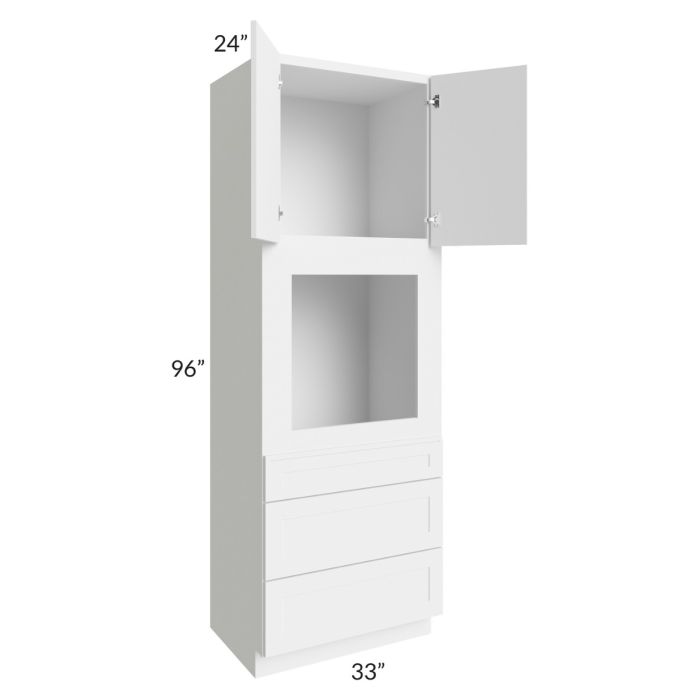 Oven cabinet with 2 doors on top of the oven opening and 3 drawers on bottom, there is no center stile. The oven opening measurements are as follows: 24"H x 24"W.