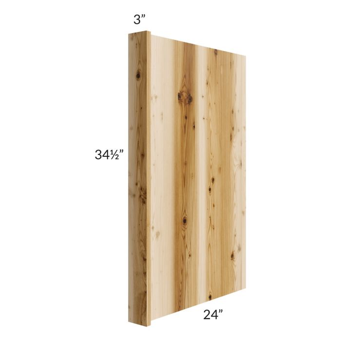 Base end panel with a 3" stile on the front. Panel is 1/2" thick. *please note this panel will not have knotted sides to match the cabinet fronts, please use the 24x35 End Panel over this appliance end panel to have the knotted details*