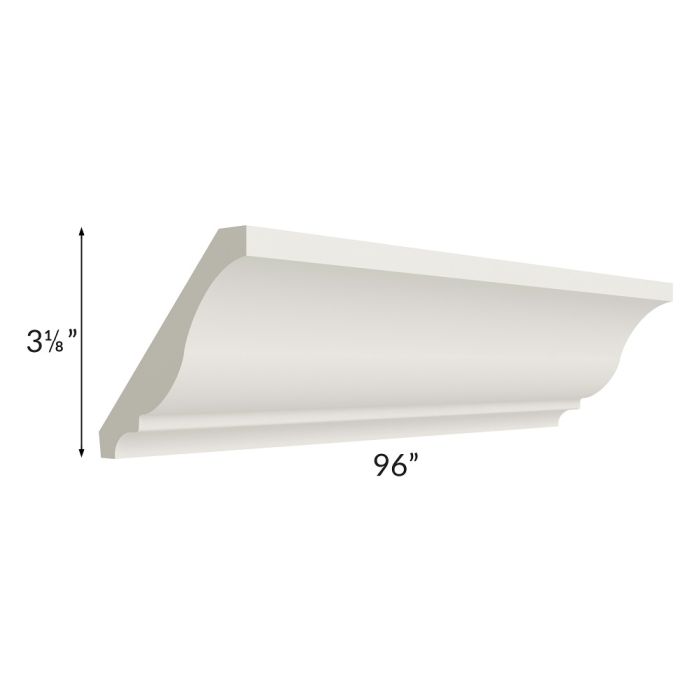 Crown molding. Installed height will be 3 1/8" and installed depth will be 2 5/8" (how far out it will extend from the cabinet).