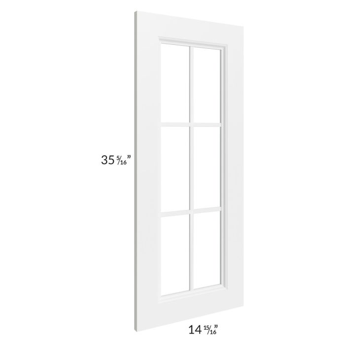 Mullion glass door for a corner wall cabinet that is 27" wide, 36" high and 15" deep. Clear glass is included. The actual cabinet must be purchased separately.