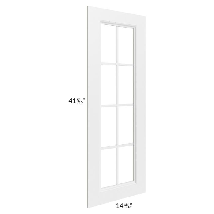 Mullion glass door for a corner wall cabinet that is 27" wide, 42" high and 15" deep. Clear glass is included. The actual cabinet must be purchased separately.
