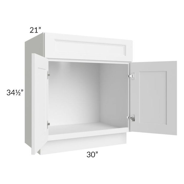 Bathroom vanity that has 2 doors and 1 false drawer front.