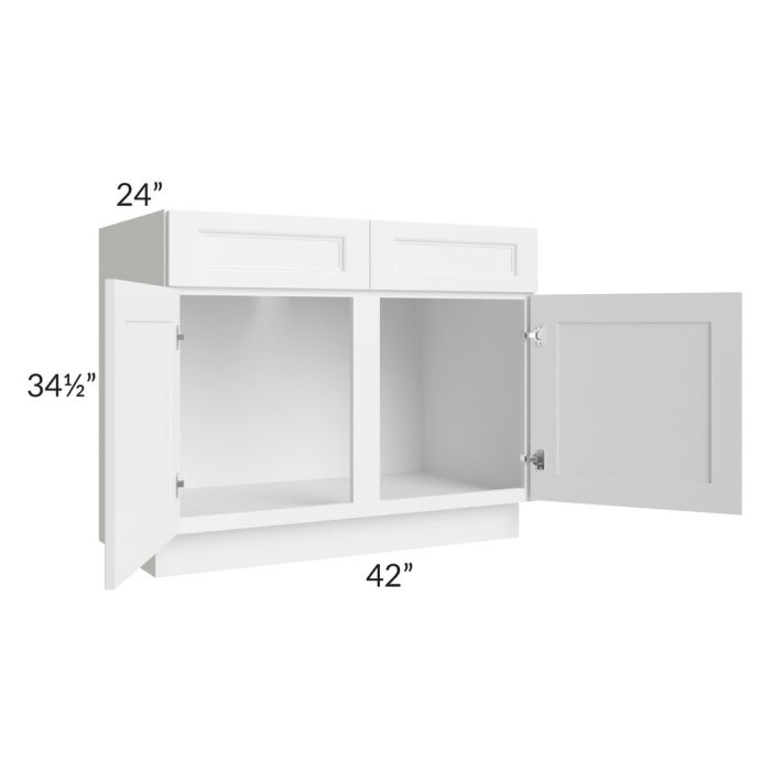 2 door sink base cabinet that comes with 2 false drawer front and no shelves. This cabinet does have a center stile and a full 1/2" back.