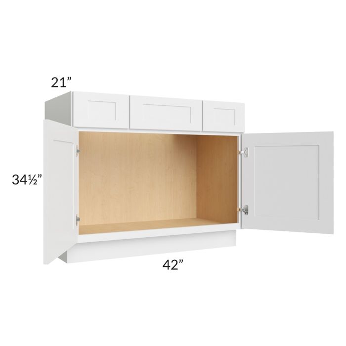 Royal White Shaker 42" Vanity Sink Base Cabinet with Drawers