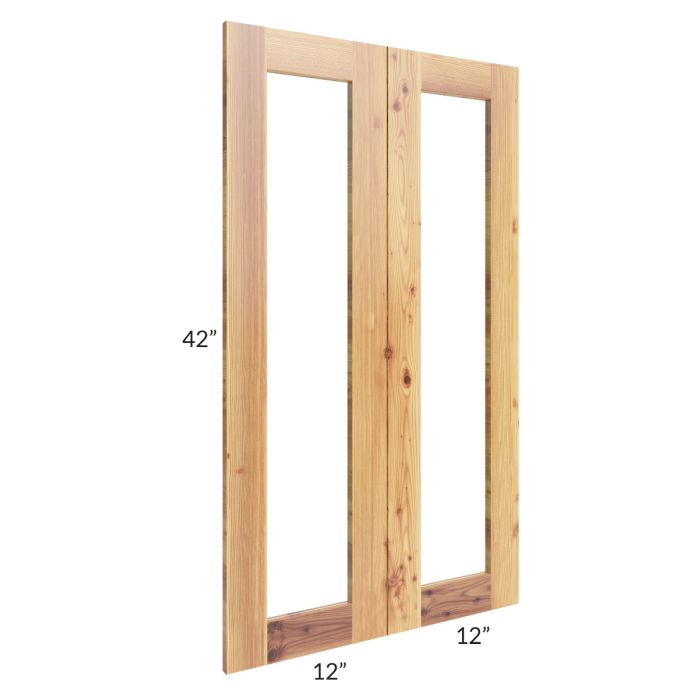 Set of mullion doors for a 24"W x 42"H wall cabinet that will match the door style of the cabinet and has plain glass. The glass is also included.