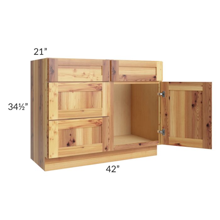 Rustic Shaker 42" Vanity Sink Base Cabinet (Drawers on Left)