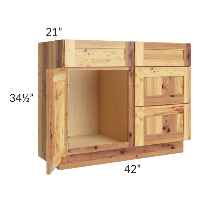 Rustic Shaker 42" Vanity Sink Base Cabinet (Drawers on Right)