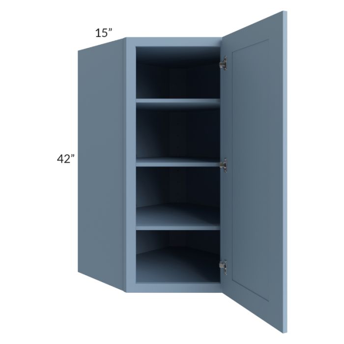 Description / Sky Blue Shaker 27x42x15 Wall Diagonal Corner Cabinet