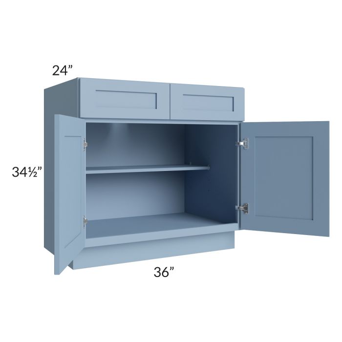 2 door base cabinet with 2 drawer and 1 shelf. There is no center stile on this cabinet.