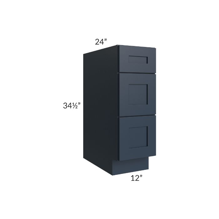 Description / Southport Blue Shaker 12" 3-Drawer Base Cabinet