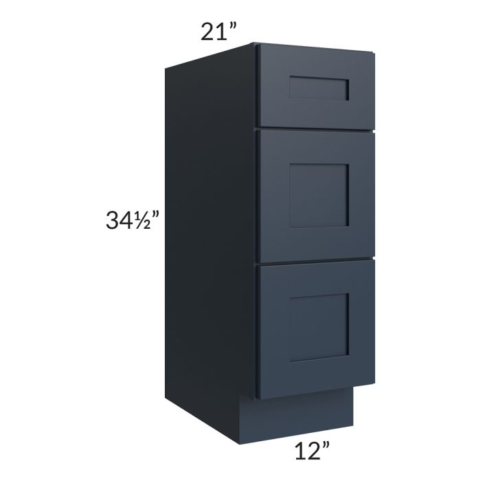 Description / Southport Blue Shaker 12" Vanity 3-Drawer Base Cabinet