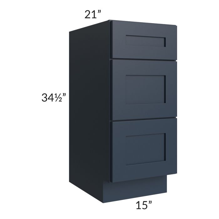 Description / Southport Blue Shaker 15" Vanity 3-Drawer Base Cabinet