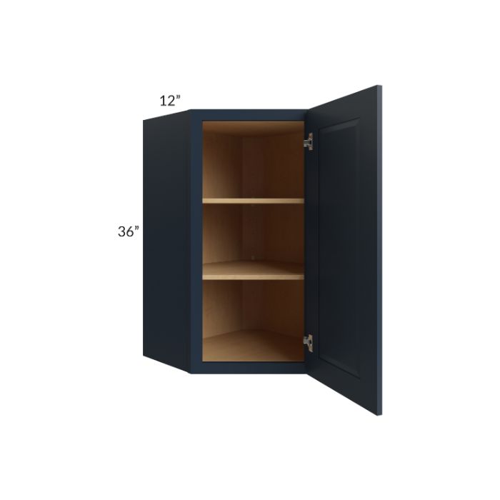 Description / Southport Blue Shaker 24x36 Wall Diagonal Corner Cabinet