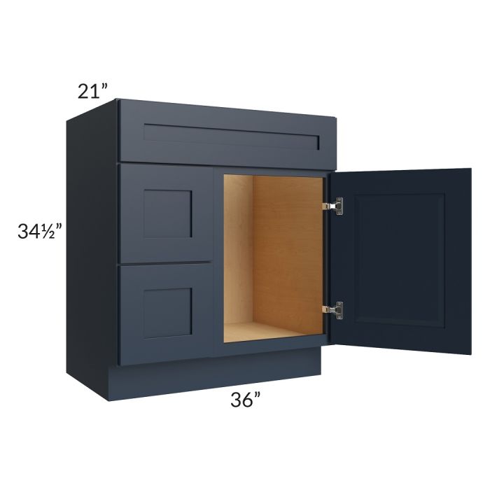 Southport Blue Shaker 30x21 Vanity Sink Base Cabinet (Door on Right)