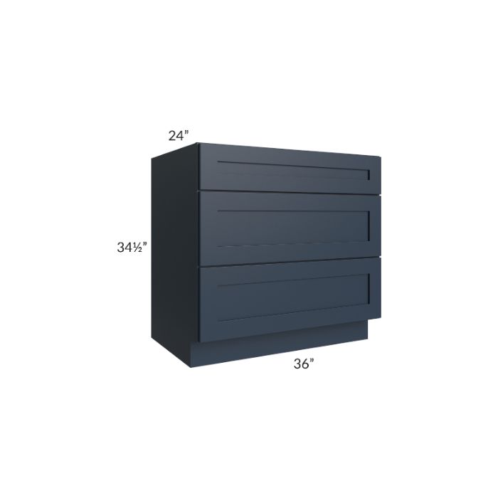 Southport Blue Shaker 36" 3-Drawer Base Cabinet
