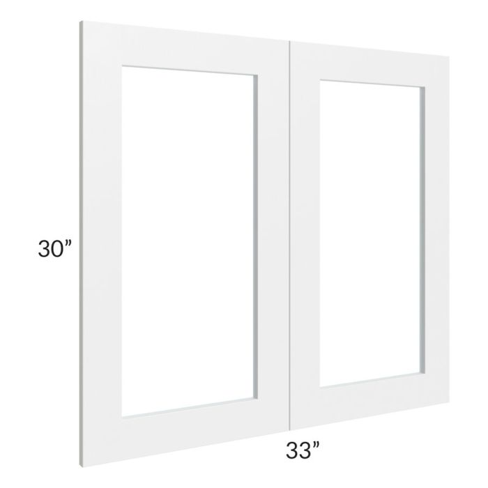 Glass doors for a wall cabinet that is 33" wide and 30" high. Frosted glass is included. The actual cabinet must be purchased separately.