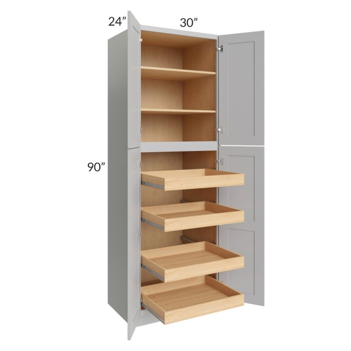 Stone Shaker 30x90x24 Wall Pantry Cabinet with 4 Rollout Trays
