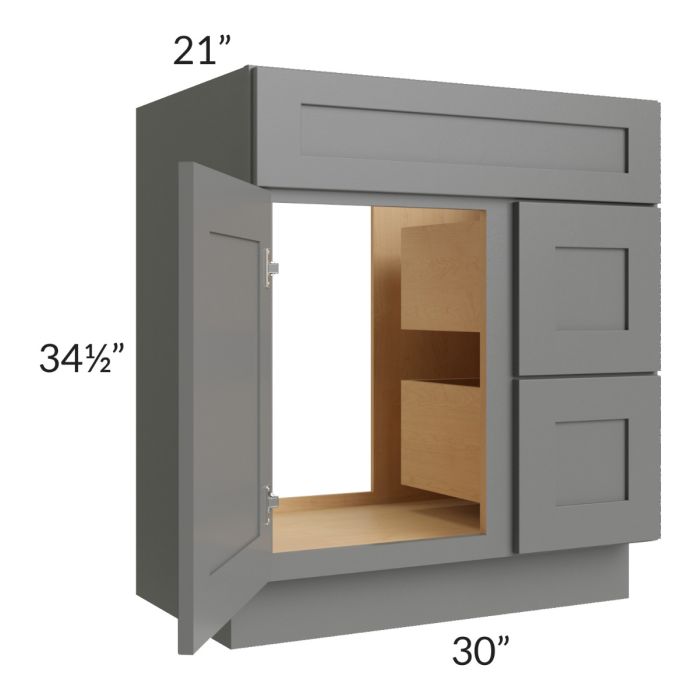 Stratton Dark Grey Shaker 30" Vanity Sink Base Cabinet with Drawers on the Right