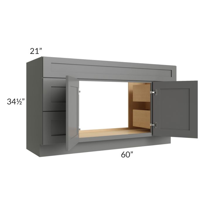 Stratton Dark Grey Shaker 60" Vanity Sink Base Cabinet
