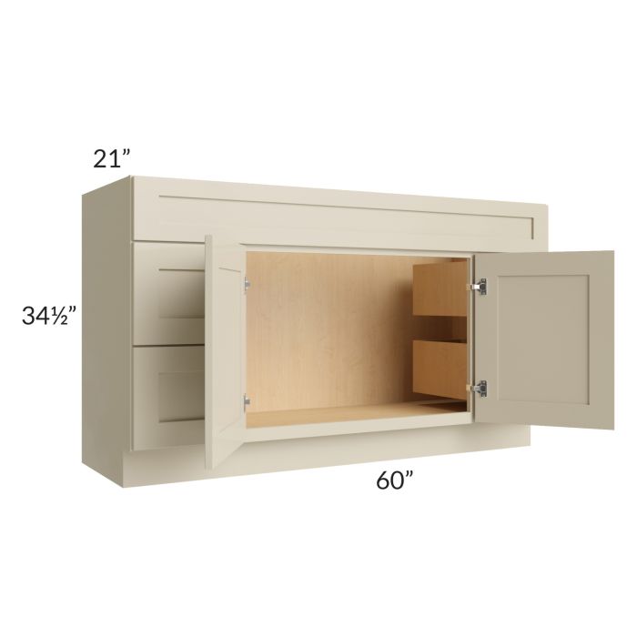 Stratton Khaki Shaker 60" Vanity Sink Base Cabinet