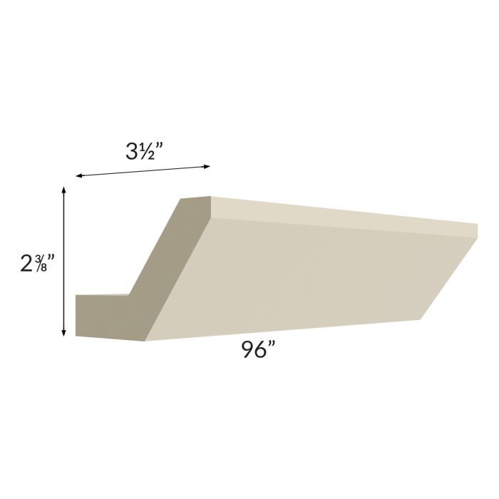 Shaker crown molding. Installed height will be 2-3/8" and installed depth will be 3-1/2" (how far out it will extend from the cabinet).