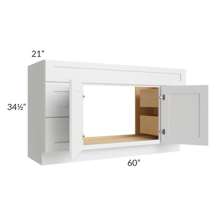 Description / Stratton White Shaker 60" Vanity Sink Base Cabinet