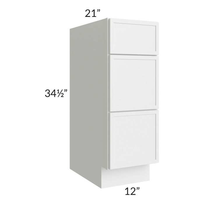Description / Township White 12" 3-Drawer Vanity Base Cabinet