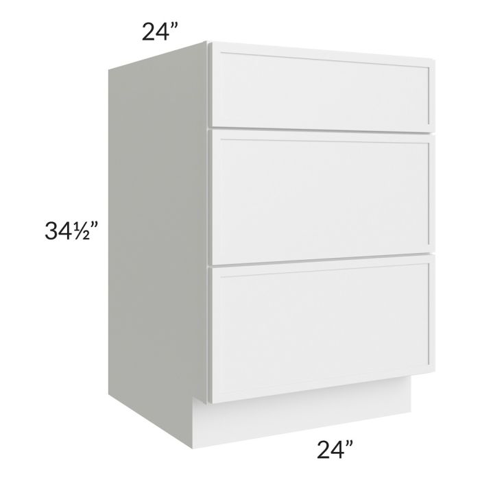 3 drawer base cabinet that has (1) 6-1/2" drawer on top and (2) 10-3/4" drawers on bottom.