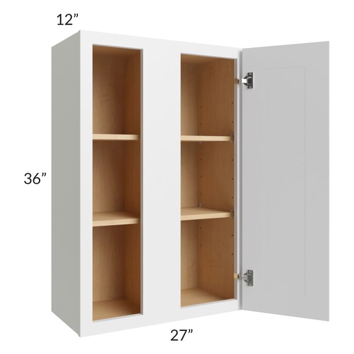 Wall blind corner cabinet that can be pulled up to 3" to take up a total of 30" of wall space. The cabinet has 2 adjustable shelves and an 11-1/2" wide door. A filler of 1” or greater is required betweenthe blind and adjacent cabinet, depending on the door hardware being utilized.