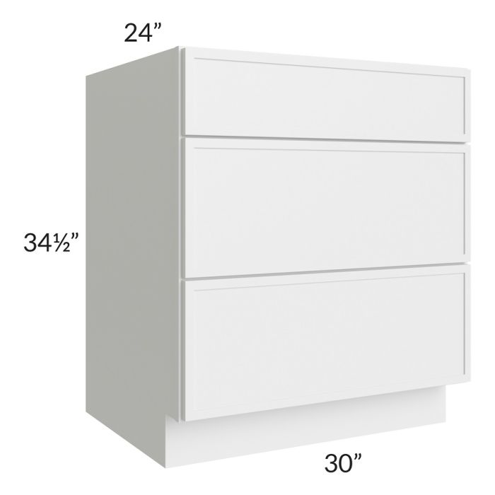 3 drawer base cabinet that has (1) 6-1/2" drawer on top and (2) 10-3/4" drawers on bottom.