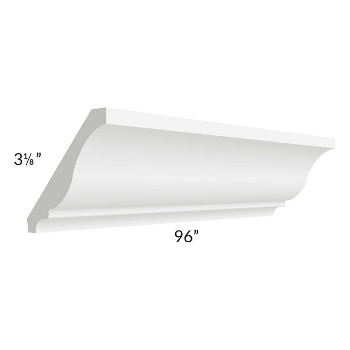 Crown molding. Installed height will be 3-1/8" and installed depth will be 2-5/8" (how far out it will extend from the cabinet).