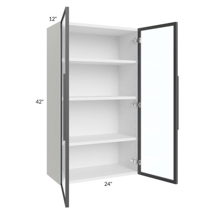Glass door wall cabinet that comes with 3 adjustable shelves. The doors will have aluminum frames and also includes smokey glass.