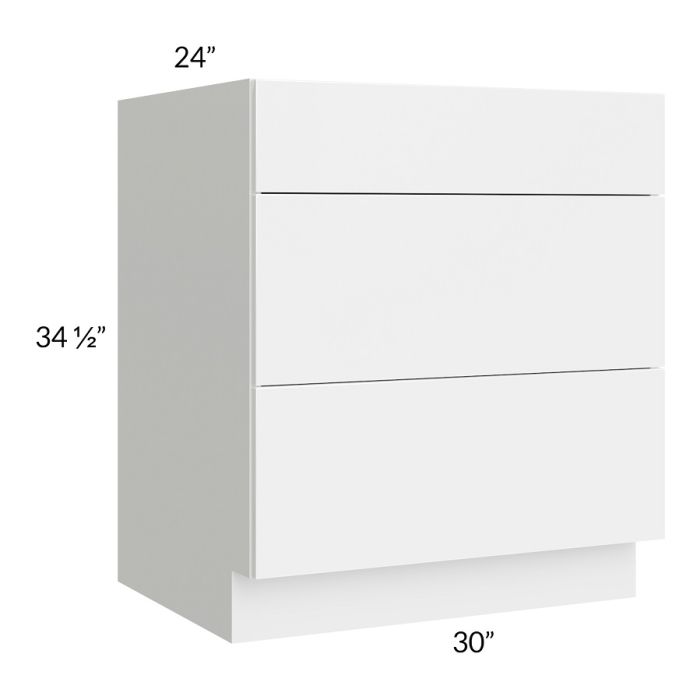 Venetian White Gloss 30" 3-Drawer Base Cabinet