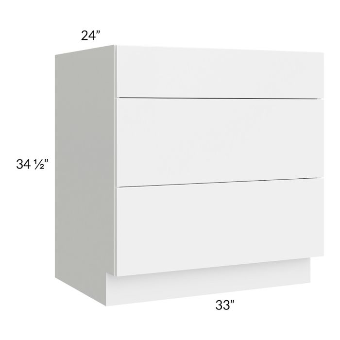 Venetian White Gloss 33" 3-Drawer Base Cabinet