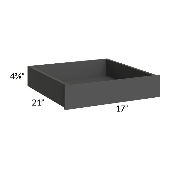 Low height roll out tray to be used in a 21" base cabinet (cannot be used with vanities, which have a shallower depth). There will be a front panel on the roll out that will be 1/2" wider than the drawer box.