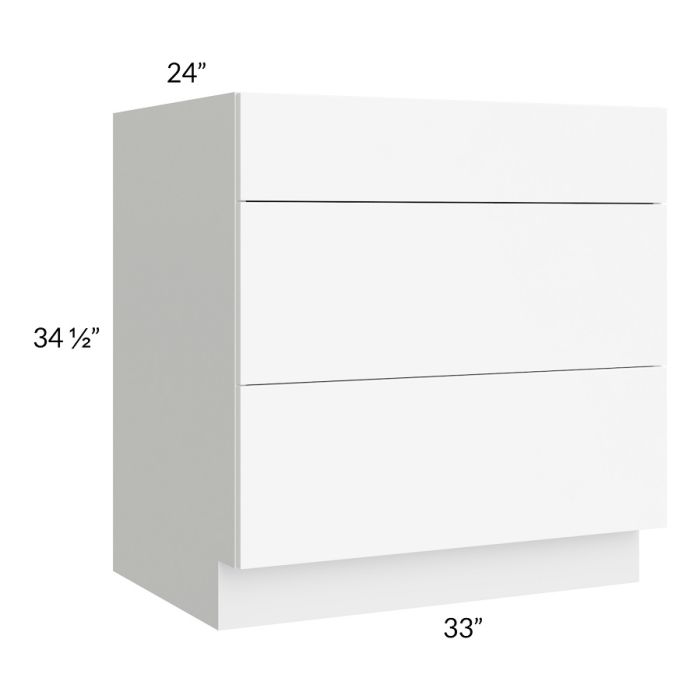 Venetian White Matte 33" 3-Drawer Base Cabinet