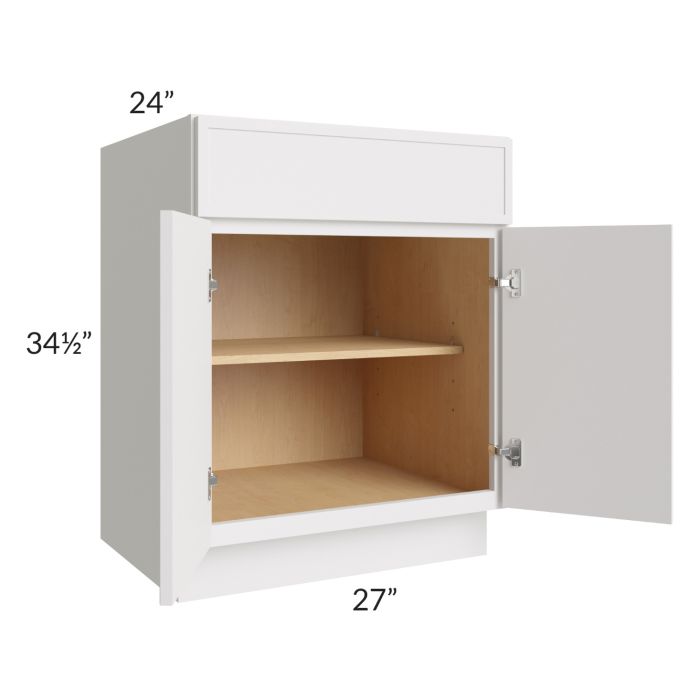 2 door base cabinet with 1 three quarter depth adjustable shelf and 1 drawer.