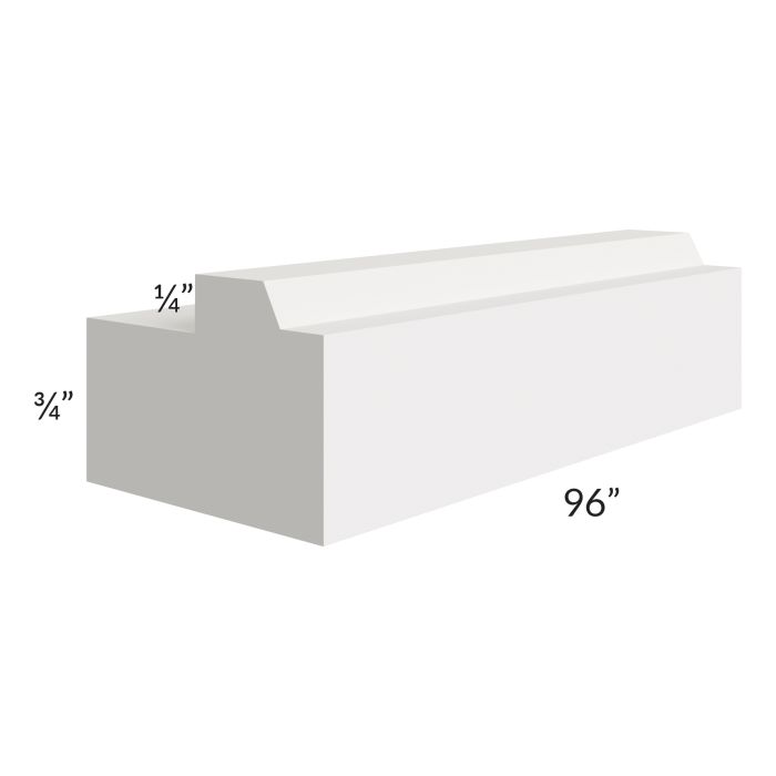 Light rail molding, overall depth is 1-1/2", the flat part that will install under the wall cabinets is 3/4" deep. The lip that will extend over the front of the wall cabinet is 1/4" high.