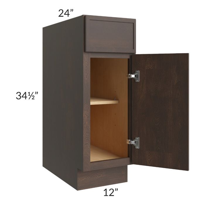 1 door base cabinet with 1 three quarter depth adjustable shelf and 1 drawer.