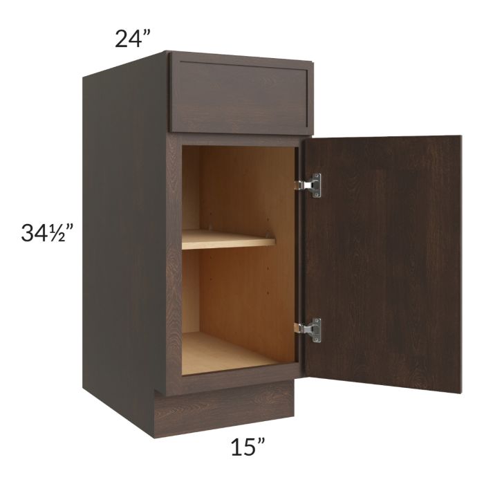 1 door base cabinet with 1 three quarter depth adjustable shelf and 1 drawer.