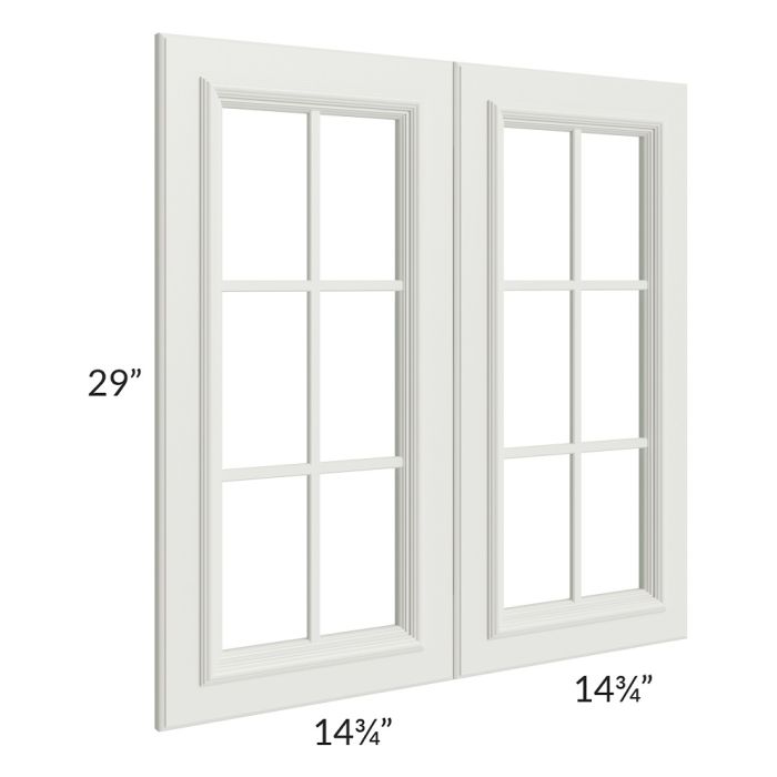 Set of 2 mullion glass doors for a 30"W x 30"H wall cabinet. Glass is not included and the cabinet must be purchased separately.